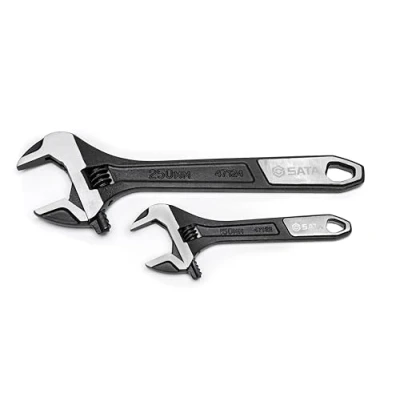 SATA ST47130 2 Piece 6 Inch and 10 Extra Wide Jaw Adjustable Wrench/Spanner Set with Forged Alloy Steel Body Chrome Plated Finish, Black Phosphate/Polished