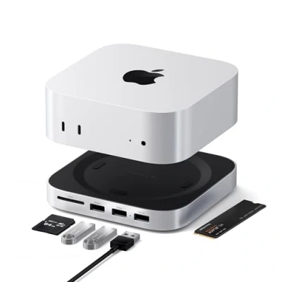 Enhanced Storage Capability – Expand your Mac Mini M4 capabilities with up to 4TB internal storage. The Satechi Mac Mini M4 Dock supports M.2 NVMe SSD in 2230/2242/2260/2280 sizes for blazing-fast data transfer with speeds up to 10Gbps. Please note: SSD is not included. The hub's enslosure is not compatible with SSDs that have heatsinks, double-sided drives, and M.2 SATA SSDs. 5-in-1 Expansion Ports – Experience a versatile docking station with front-facing port accessibility, featuring two high-speed USB A 3.2 data port (up to 10Gbps), a USB-A 2.0 (480Mbps), and a SD card reader UHS-II (up to 312MB/s) for rapid media access. The Satechi Mac Mini Hub offers a selection of ports, ensuring seamless connectivity for all your essential peripherals in a single, efficient device. Note: USB-A ports do not support CD readers, Apple SuperDrive, or iPad charging. Optimized Self-Cooling – The Satechi M4 Mac Mini heat-dissipating design features bottom vents to help keep the hub cooler, while a recessed area on top ensures proper heat dissipation without obstructing the fan on the bottom of the Mac Mini. Enjoy peak performance and efficiency, even when using multiple connected devices simultaneously. Recommended to connect one bus-powered device at a time. Streamlined Design – Crafted to seamlessly match your Mac Mini M4, this usb c hub is made with industry-grade aluminum, combines durability with a slim, micro design (L: 12.7cm/ 5in; W: 12.7cm/ 5in; H: 2.06cm/ 0.8in) that fits perfectly with the Mac Mini's aesthetic. Features a dedicated space to easily power on your device using the new integrated power button. The redesigned dimensions of the Mac Mini M4 Stand enable a packaging size that is 61% smaller than that of our previous Mac Mini Hub. What's Included – The Mac Mini M4 Stand & Hub comes complete with a screw, screwdriver, and thermal pad for a seamless and secure installation experience. To ensure ease of use, it also includes a detailed user manual and access to dedicated customer support. Plus, Satechi products are backed by a 2-year limited warranty, protecting against defects in materials and workmanship under normal use.