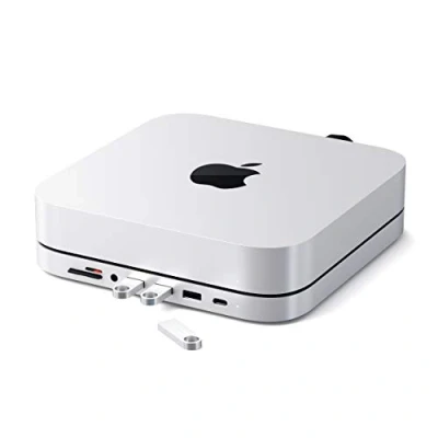 SATECHI USB C Hub Type Aluminum Stand & Data Port, Micro/SD Card Readers, 3.0 Headphone Jack Port For M2/ M1 Mac Mini, Studio, 2020 2018 Mini (Silver)