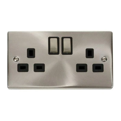 Satin Chrome Double 2 gang 13 amp Switched Socket