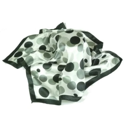 Satin neck scarf with Black and Grey spots pattern 50cm square