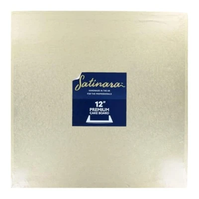 HIGH QUALITY: This is a top quality 12mm thick cake drum which is handmade in the UK. You can rely on the best possible finish on this pale gold cake board which will beautifully display any celebration cake. SQUARE CAKE BOARD: This pack contains one single 12 inch square individually wrapped cake board with an attractive pale gold foil finish. Shrink wrapped for hygiene. STRONG: The Satinara cake board is a great choice for all types of cakes from sponges to dense fruit cakes and is the best cake board to support heavier cakes and multi-tier cakes. RE-USEABLE: Covered in pale gold foil, the Satinara cake board can be re-used over and over again after cleaning. Due to its thickness, if preferred the gold board may be covered in sugar paste depending on your cake design, or applying a pretty ribbon around the edge of the board is a popular method of decorating your cake drum. PALE GOLD FOIL - Traditional Light Gold coloured, embossed foil finish on the top and sides with a white paper on the reverse. By popular demand Satinara Cake Boards are now also offered in this beautiful gold colour, ideal for Weddings, Anniversaries, extra special Birthdays and more. These are single boards that are individually wrapped for an additional level of protection. This is a strong cake board making it an ideal choice from everyday baking to more elaborate celebration cakes.