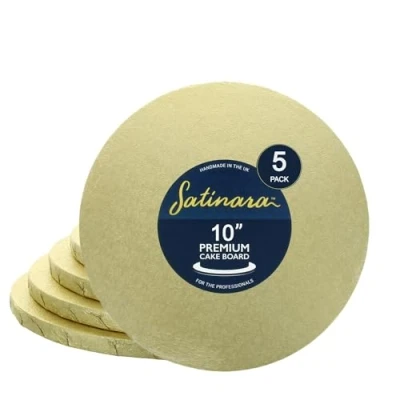 HIGH QUALITY: This is a top quality 12mm thick cake drum which is handmade in the UK. You can rely on the best possible finish on this pale gold cake board which will beautifully display any celebration cake. 5 PACK: This pack contains 5 x 10 inch round cake boards/drums with an attractive pale gold foil finish. Shrink wrapped for hygiene, the cake boards inside this pack are not individually wrapped. A multipack of 5 cake boards is an ideal choice for regular cake makers and decorators. STRONG: The Satinara cake board is a great choice for all types of cakes from sponges to dense fruit cakes and is the best cake board to support heavier cakes and multi-tier cakes. RE-USEABLE: Covered in pale gold foil, the Satinara cake board can be re-used over and over again after cleaning. Due to its thickness, if preferred the gold board may be covered in sugar paste depending on your cake design, or applying a pretty ribbon around the edge of the board is a popular method of decorating your cake drum. PALE GOLD FOIL - Traditional Light Gold coloured, embossed foil finish on the top and sides with a white paper on the reverse. By popular demand Satinara Cake Boards are now also offered in this beautiful gold colour, ideal for Weddings, Anniversaries, extra special Birthdays and more. This is a strong cake board making it an ideal choice from everyday baking to more elaborate celebration cakes., Weight: 1.7196056436 pounds, Manufacturer: Culpitt