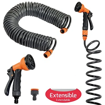 Measurement: 15 m. Ideal hose for terraces and small garden. Includes irrigation gun and universal quick connectors. Hose section 10x12 mm. With two hose connectors. With water gun with 7 positions. Article also known as tube/hose, wrinkled, watering, irrigation, self-rolling, extendable, spring, garden hose, hose set, hose kit, spiral hose., Weight: 2.08998224376 pounds, Manufacturer: SATURNIA