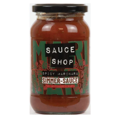 Sauce Shop Spicy Marinara Simmer Sauce 360g is a rich, spicy tomato sauce with garlic, jalapeño, and oregano—perfect for spaghetti, meatballs, or pizza. Made in small batches with barrel-aged jalapeños, it contains no artificial ingredients and delivers a fruity, complex chilli flavour.