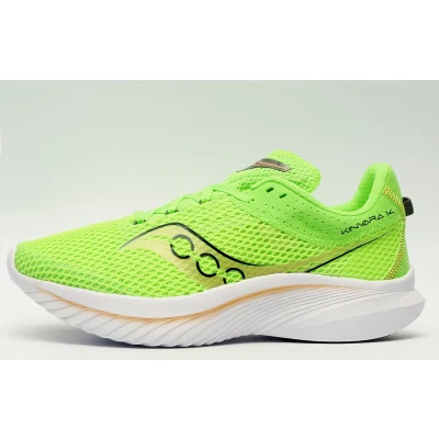 When it comes to a shoe that's light in weight but still packs performance and signature soft cushioning, these Kinvara 14 running shoes by Saucony are born to deliver. This classic go-to is lighter than ever, with top-level flexibility so you can move forward with less effort. Plate-free, making it naturally faster than many other performance running shoes, the Kinvara 14 is perfect for those seeking a daily trainer thats naturally fast and ultra-flexible.The PWRRUN+ sockliner helps give you a luxurious underfoot feel, enhancing comfort on every run and signature cushioning technology for a softer feel and even more energy return, ensuring you get the most out of every stride.With the newly designed rocker shape, you'll experience smoother, faster turnover, making your runs more efficient and enjoyable. These Kinvara 14 running shoes are designed to be your reliable companion, providing the perfect balance of performance and plush cushioning for all your running needs.- Synthetic / textile upper- Vegan and recycled materials- Plate free for a faster stride- Rocker shape design to propel you forward- PWRRUN+ sockliner and cushioning- Saucony branding