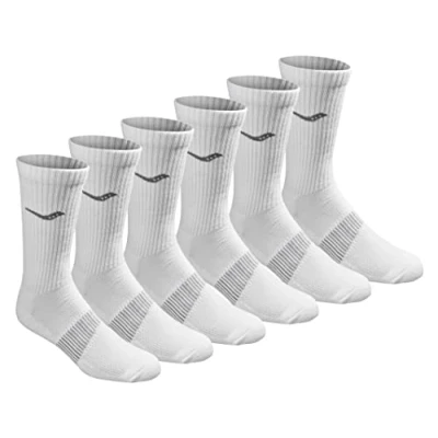 Saucony Men's Multi Pack Mesh Ventilating Comfort Fit Performance Crew Socks, White Solid Foot (6 Pairs), Shoe Size: 8 12