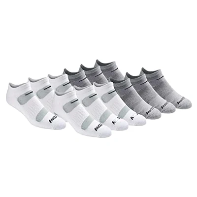 Saucony Men's Rundry Mesh Ventilating Comfort Fit Performance No Show Socks, Available in M XXL (6, 18, Grey Fashion (12 Pairs), Large (Pack of 12)