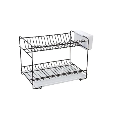 AmazonMaterial: steel painted in bronze ceramic paint Dish rack in 2 levels, with capacity for 18 dishes With a tray for the water in translucent plastic white With a cutlery drainer in plastic white Measures: 38,5x25x28 cm. Available in 3 different colors