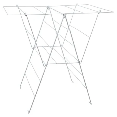 Material: steel with anticorrosive plastic coating This coating offers a long term protection to stress craking and peeling coating, the inclemency of the weather and other airborne pollutants Ideal for little clothes 15 m. of drying space Foldable. Measures opened: 98x62x94 cm. Measures closed: 62x5x100 cm.