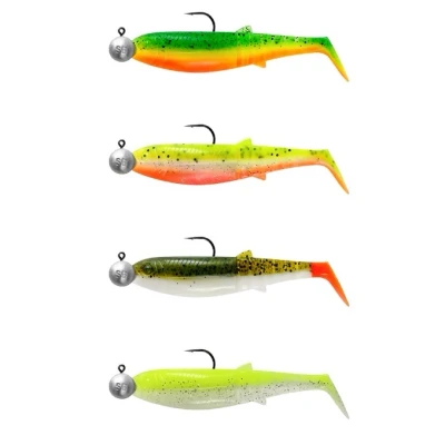 FishdealSavage Gear Cannibal Shad - Choice of different options - Length: 8cm - Weight: 5g + 7.5g - Hook size: #1/0 - Number: 4 pieces - Paddle tail shad - Lively action when dropped and retrieved - Versatile bait - Perfect for perch, trout, pike, zander, catfish and cod, among others - New colors - Colors with glitter and UV additives - Ideal for murky or clear water - Are pre-rigged Undoubtedly one of the most popular paddle tail shads on the market in recent decades. The Cannibal shad has an amazingly lively action when both dropped and retrieved. It is a tremendously versatile bait that can catch perch, trout, pike, zander, catfish and cod. The color range has been updated and thanks to new injection technology it now includes a wider palette of super effective colors with sparkle, glitter and UV additions. The best just got better. These ready-to-use mixed color kits combine the most effective colors for dark, murky water and clear water with the round jig heads for the perfect presentation and swimming action!