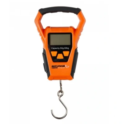 Savage Gear Digi Scale SW - Maximum weight: 50kg - Tare function - Units: kg, lb or oz - Data lock (after five seconds) - Auto-off (after one minute) - Overload warning - Low battery indicator - 1m (39 inch) tape measure - Requires two 1.5V AAA batteries (not included) - IPX6 waterproof When you catch the fish of a lifetime, you need a scale you can trust! That’s when the waterproof Savage Gear Digi scale comes in handy. The crystal clear LCD screen with blue backlight accurately measures weights up to 50kg in 10g increments in a matter of seconds! It’s also saltwater resistant, so you can take it anywhere!