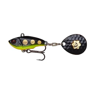 Savage Gear Fat Tail Spin - Spinner - Available in several variations - Sinking - Length/weight: 5,5cm/9g - Length/weight: 6,5cm/16g - Length/weight: 8,0cm/24g - Hook size #10 - SGY 1x BN treble hook - Rotating tail blade - Forged strong split ring - Creates glare - Creates a lot of vibration - Casts very far - Great lure for pike, zander, trout, asp and perch! The Savage Gear Fat Tail Spin is a super versatile lure. Great action when dropping and during the retrieve, the bait vibrates and flashes simultaneously. And it can be cast far and wide. By fishing at varying speeds and dropping the bait with a tight line every now and then you will provoke attacks. The Fat Tail Spin is great for perch, asp, trout, pike and zander.