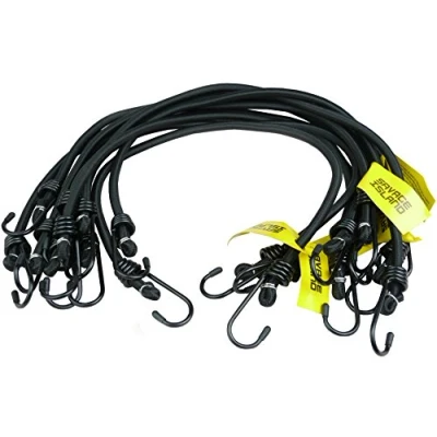 SUPER STRONG - Heavy duty Military spec 8mm bungee cord each cord individually tagged with Savage Island brand USE AFTER USE: 50% Rubber / 50% Latex core allows for maximum stretch and hold retention. TOUGH: Woven protective outer sheath & plastic coated metal hooks at each end to protect your goods. ALL WEATHER - UV Resistant - ideal for outdoor pursuits, shelter/basha bulding, luggage, camping, cadets & army training ANY FIT / ANY SIZE: Available in various lengths (lengths available to buy are un-stretched)