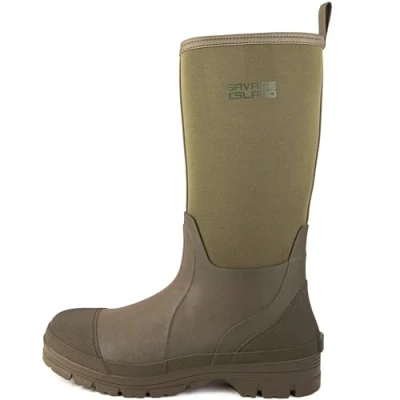 These boots are crafted with the finest natural rubber, ensuring they can tackle the toughest weather conditions with ease. Rain, mud, or muck – our Savage Island boots are up to the challenge! Our unique combination of neoprene and rubber provides unbeatable comfort and durability. The neoprene upper can be effortlessly rolled down, allowing you to customize your style from knee height to calf length in an instant. The neoprene lining guarantees exceptional insulation, keeping your feet warm and cozy even on the chilliest days. Say goodbye to discomfort and hello to lasting comfort. Our boots feature a non-slip rubber sole for superior traction. Walk with confidence on wet surfaces, knowing you won't slip and slide. Thanks to the convenient pull-on handles, our boots are a breeze to put on and take off, saving you time and hassle.