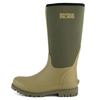 These boots are crafted with the finest natural rubber, ensuring they can tackle the toughest weather conditions with ease. Rain, mud, or muck – our Savage Island boots are up to the challenge! Our unique combination of neoprene and rubber provides unbeatable comfort and durability. The neoprene upper can be effortlessly rolled down, allowing you to customize your style from knee height to calf length in an instant. The neoprene lining guarantees exceptional insulation, keeping your feet warm and cozy even on the chilliest days. Say goodbye to discomfort and hello to lasting comfort. Our boots feature a non-slip rubber sole for superior traction. Walk with confidence on wet surfaces, knowing you won't slip and slide. Thanks to the convenient pull-on handles, our boots are a breeze to put on and take off, saving you time and hassle.