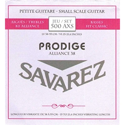 Savarez strings for short-scale guitars (children's guitars), excellent quality from the beginning, beautiful sound, ideal intonation and pleasant feel, grey packaging = Prodige Alliance "A" with the legendary Alliance carbon treble strings 500AXS Carbon Treble Strings, Alliance Carbon (Fluorocarbon/PVDF) Treble Strings, High Tension Classic Bass Strings, Blank G String For scale 380-550 mm (1/8-1/2 size), E1, 0.66 mm/0260 inches, H/B2, 0.77 mm/0303 inches