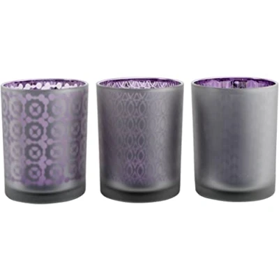 Saville Designs Patterned Votive Tealight Candle Holders 3 Piece Set, Purple