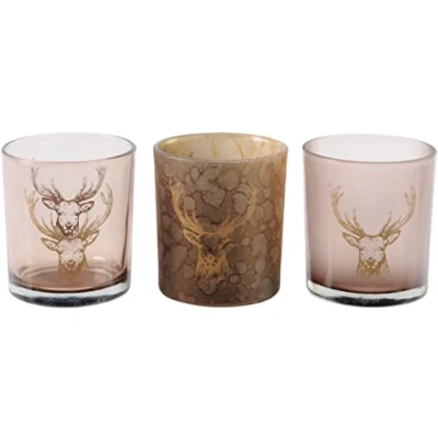 Saville Designs Xmas Festive Stag Votive Tealight Candle Holders 3 Piece Set, Bronze