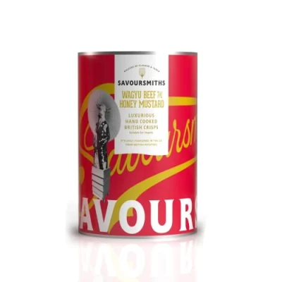 SAVOURSMITHS Vegan Wagyu Beef and Honey Mustard Flavour Potato Crisps Gluten Free 250 g Tin, Red, 250g (Pack of 1)