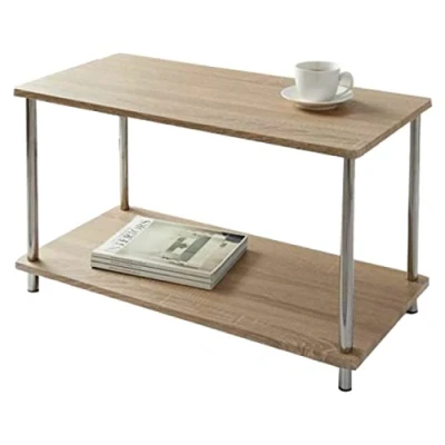 ManoManoGeneral description Welcome to the Large Oak Coffee Table with Steel Legs & Shelf Underneath. This modern 2-tier wooden coffee table is designed to enhance your living space with its stylish oak finish and practical features. It is perfect for placing books, pictures, or magazines, making it a versatile addition to any room in your home. Technical specifications Brand: Spot On Dealz Color: Oak Material: Wood Item Weight: 7 KG Dimensions: W80 x D40 x H41 CM Installation Simple and easy to assemble Usage Ideal for indoor use only Suitable for bedroom, living room, or any room