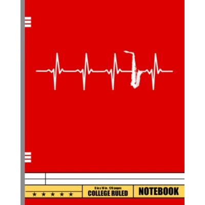 Saxophone heartbeat Notebook: Composition Notebook College Ruled, Journal 120 8x10 Wide Ruled Pages