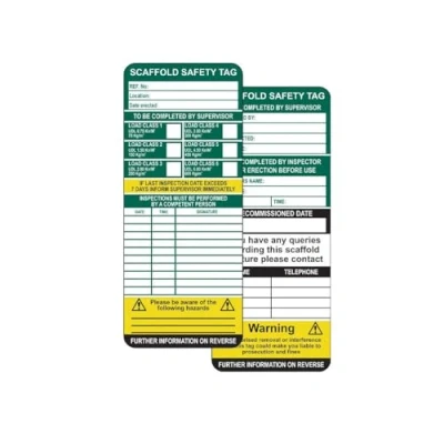 Provides relevant safety information alongside an inspection record for scaffolding. Designed for use with the ClawTag holder For use on Scaffolding Double sided tags