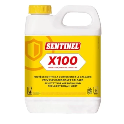 Sentinel X100 Inhibitor - 1 Litre is a premium solution designed to protect clean central heating systems from limescale and corrosion. It is ideal for all types of indirect central heating systems, extending the lifespan of your system, ensuring maximum efficiency, and reducing fuel consumption. This heavy duty inhibitor provides robust protection against the buildup of limescale and corrosion, ensuring the longevity and reliability of your heating system. It effectively guards against both limescale formation and corrosion, which can otherwise lead to reduced system efficiency and potential damage. The Energy Saving Trust has recommended this product for its efficacy in improving system efficiency and reducing energy usage. The Sentinel X100 Inhibitor utilizes advanced TripleTech technology to offer superior protection against corrosion, ensuring lasting performance. It is safe for use with all system metals.