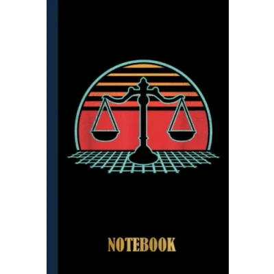 Scales of Justice Lawyer Attorney Retro 80s Style Judge Notebook: Wide Ruled Journal , Gifts Personalized, Lined Notebook For With Black Cover