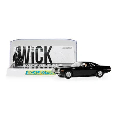 Scalextric Cars C4595 John Wick Plymouth Barracuda, Chapter 4 Toy Slot Car for use with Race Tracks and Set Gift Ideas Kids Adults, Accessories