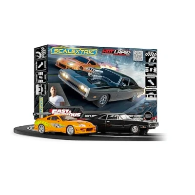 Scalextric Racing Track Sets for Kids & Adults: This car track toy set combines retro Scalextric branding with highly detailed and functional vehicles as well as everything you need to begin your Scalextric journey in one box Construction Race Track Set: Scalextric sets for adults and kids alike, featuring everything you need to construct your car racing career. You can then add new cars, flexible car track pieces & Scalextric cars accessories to build your ultimate layout, or upgrade your analogue slot car race tracks to Digital and ARC options. Race tracks for boys and girls to enjoy with parents together Adults and Kids' Play Vehicles: This set brings the high-octane thrills of the blockbuster series. Race head-to-head with Dom Toretto’s iconic Dodge Charger and Brian O’Conner’s legendary Toyota Supra, both meticulously detailed to replicate the originals Multiple Car Racing Track Layouts: This Scalextric Set comes with 4 possible car track toy layouts. Decide how you want your circuit to look, clip the track pieces together, plug in the transformer and you’re off – no two races are the same What's Inside: 1x Toyota Supra, 1x Dodge Charger, 15x Track Pieces, 2x Hand Controllers, 2x Track Supports, 1x Overhead Gantry, 1x Powerbase, 1x Transformer. Ages 5+, Manufacturer: Hornby Hobbies LTD