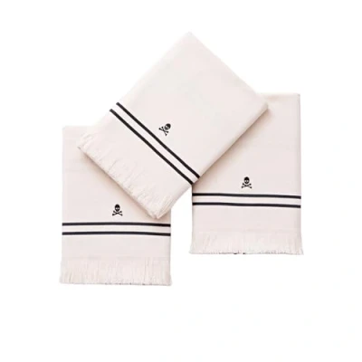 Set of 3 cotton tea towels with embroidered logo Scalpers. Refresh your collection with this practical pack of cloths that combines functionality and style. Made from soft and durable 100% cotton. These dish towels offer a perfect blend of quality and elegance for your everyday kitchen tasks. Each cloth has a length of 70cm and a width of 50cm, providing an ideal size for easily handling utensils, cleaning surfaces and drying dishes efficiently.