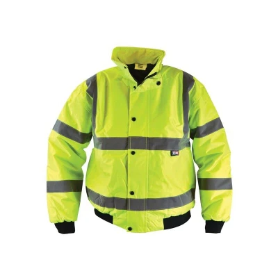 General description This Scan Hi-Vis Bomber Jacket in bright yellow is designed for high visibility and protection against adverse weather conditions. It features a waterproof construction and is equipped with retro-reflective tape for enhanced visibility in low-light environments. Technical specifications Size: XXXL (56in) Material: 100% polyester 300D fabric with 190 polyester taffeta lining Waterproof: Yes Insulation: Quilted liner with polyester wadding Seams: Stitched and taped Other information Conforms to EN ISO 20471 Class 3 Conforms to EN343 Class (3.1.X) for protective clothing against foul weather