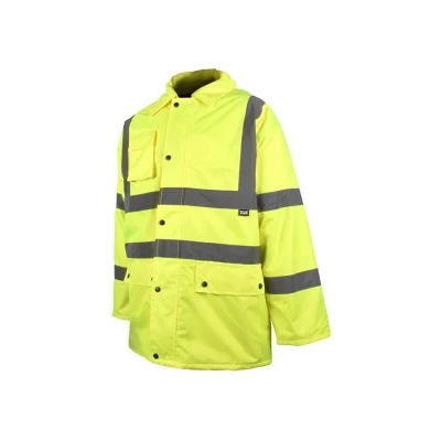 General description This Scan High-Visibility Yellow Waterproof Motorway Jacket is designed for optimal protection against foul weather conditions. It features a combination of durable materials and thoughtful design elements, making it suitable for use in challenging environments. Technical specifications Size: XL (48in) Outer layer: 100% polyester with waterproof polyurethane coating Lining: 190 polyester taffeta Insulation: Quilted liner with polyester wadding Reflective tape: 5cm retro-reflective taping on arms and torso Seams: Stitched and taped Other information Conforms to EN 471 Class 3 Conforms to EN 343 for protective clothing against foul weather Conforms to EN ISO 20471 Class 3 Conforms to EN343 Class (3.1.X)
