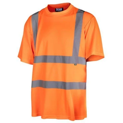 ManoManoGeneral description This Scan Hi-Visibility T-shirt in orange is designed for enhanced visibility and safety in various environments. It meets the EN ISO 20471 Class 2 standards, making it suitable for use in low-light conditions. The shirt is both durable and comfortable, featuring a round neck collar and short sleeves, ideal for warm settings where high visibility is essential. Technical specifications Size: XL (46in) Standards: EN ISO 20471 Class 2 Material: Made from recycled materials UPF protection: 40+ Other information Reflective panels: Parallel horizontal and vertical for enhanced visibility