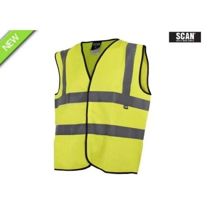 General description The Scan Hi-Visibility Yellow Waistcoat is designed for safety and visibility in low-light conditions. Made from durable 100% polyester, it features reflective tape that enhances visibility during nighttime or poor weather conditions. This waistcoat is suitable for various outdoor activities, construction sites, or any environment where high visibility is essential. Technical specifications Material: 100% polyester Color: Yellow Size: Large (44 inches) Reflective tape: Two bands around the torso and one across each shoulder Installation Fastens easily with hook and loop strip at the front Usage Wear over clothing to increase visibility in dark or low-light environments Ideal for construction, road work, cycling, or outdoor activities requiring high visibility Other information Conforms to EN ISO 20471:2013+A1:2016 Class 2