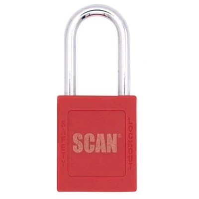 General description The Scan Lockout Padlock is designed for use with lockout hasps and tag systems to enhance safety during maintenance or repair work. It features a durable nylon body with a brass cylinder, providing resistance to chemicals and UV exposure. The padlock has a standard 38mm shackle and is equipped with individually numbered keys, ensuring only the authorized keyholder can lock or unlock it. It is suitable for securing equipment and ensuring compliance with safety protocols. Technical specifications Padlock Width: 37mm Shackle Height: 39mm Shackle Diameter: 6mm Shackle Width: 20mm Security Rating: 1 Compatibility and accessories Compatible with lockout hasps and tag systems Use with SCALOCKHASP or similar lockout devices Installation Insert the shackle through the hasp or lockout device Secure the padlock by locking it with the numbered key Usage Use to lock out equipment during maintenance to prevent accidental operation Ensure only authorized personnel have the key