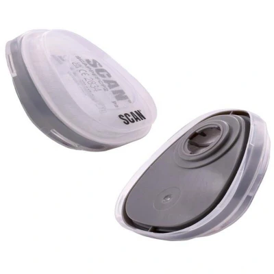These Scan Twin Half Mask P2 Particle Filter Cartridges are suitable for use with the Scan SCAPPERESPMO 1/2 mask respirator and SCAPPERESPFF full face respirator. Used to protect against particles such as dust, smoke andaerosols. They filter out up to 94% of contaminants. Supplied as a pack of 2 filter cartridges. Conforms to EN 143:2021. These are a non reusable filter but the filter material can be replaced with the SCAPPEFPP2 which contains 2 particle filters and 2 retainers.