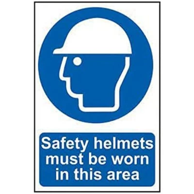 General description This safety sign indicates that safety helmets must be worn in the area. It is made from durable PVC and features clear, easy-to-read instructions and illustrations to promote safety compliance. Technical specifications Material: 1mm thick PVC Size: 400 x 600mm Printing: UV resistant inks to prevent fading Installation Easy to install using the aggressive water-based adhesive on the back of the sign Usage Place in visible areas to remind personnel to wear safety helmets Helps ensure safety compliance and reduce liability in the workplace Other information Complies with BS5499 and/or ISO 7010 design criteria where applicable