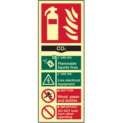 Scan SCA1592 Self adhesive PVC sign Fire extinguisher composite CO2 Photoluminescent 75 x 200mmm