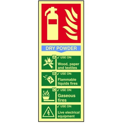 General description This Scan 'Fire extinguisher composite' safety sign is specifically designed for dry powder extinguishers. It measures 75 x 200mm and is perfect for alerting people to and providing guidance on the uses of dry powder fire extinguishers. Technical specifications Size: 75 x 200mm Material: Rigid PVC, 1.3mm thick Print: UV resistant inks to prevent fading Photoluminescent: Glows in the dark for enhanced visibility in low light conditions Certification: Exceeds PSPA Class 1 classification Compatibility and accessories Self-adhesive backing for easy installation on walls or surfaces Installation Peel off the backing and stick the sign to a clean, dry surface at a visible height. Usage Use this sign to clearly mark the location of dry powder fire extinguishers. It helps guide personnel during emergencies and ensures compliance with safety standards. Other information Non-toxic, non-radioactive, free of lead and phosphorous. Complies with BS5499 and ISO7010 design