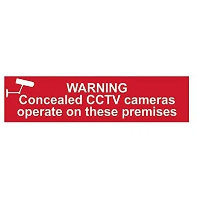 General description This warning sign is designed to inform individuals about the presence of concealed CCTV cameras on the premises. Made from durable 1mm thick PVC, it features clear instructions and illustrations for easy readability. The sign is printed with UV-resistant inks to prevent fading, ensuring long-lasting visibility. Its aggressive water-based adhesive allows it to adhere securely to various surfaces. Technical specifications Size: 200 x 50mm Material: PVC Message: 'WARNING Concealed CCTV cameras operate on these premises' Thickness: 1mm Installation To install, peel off the backing and press firmly onto a clean, flat surface. Ensure the surface is smooth for optimal adhesion. Usage Place the sign in visible locations to effectively warn individuals about CCTV surveillance on the premises. Other information