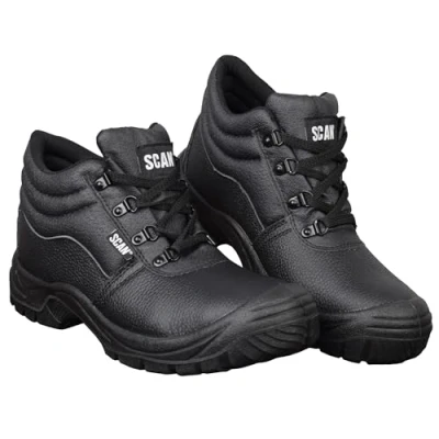 General description The Scan 4 D-Ring Chukka Safety Boots in Black (UK 10, EUR 44) are designed for comfort and protection in demanding work environments. With grained leather uppers, these boots offer excellent resistance against abrasion, making them suitable for various industries including construction, agriculture, and engineering. Technical specifications Material: Grained leather uppers Safety Rating: S1P Slip Rating: SRC Steel toecaps: 200 Joules Midsole protection Sole material: Anti-static, energy absorbent polyurethane Sole resistance: Oil, acid, alkaline, heat (up to 180°C), and penetration Compliance: EN ISO 20345 standard EN Test: CE EN ISO 20345-2011