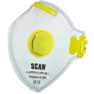 AmazonFFP1 protection level, these masks are suitable for protecting against particles bigger than 5 microns For use with: General dust, water based spray, paint mist (Water based) Exhalation valve makes breathing easier Elasticated retaining straps Adjustable nose clip and soft foam nose piece for custom fitting - FFP1 NR - Approved to EN149:2001 + A1:2009, Weight: 0.1763698096 pounds, Manufacturer: SCAN
