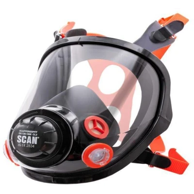 The Scan Twin Full Face Respirator offers comprehensive protection and comfort in various environments. Covering the face to provide protection for both respiratory tract and the eyes against harmful substances like dust, fumes, vapours, and gases and from any projected debris. The 4 point full adjustable headband ensures the mask is properly sealed around the face. The high impact polycarbonate face shield provides an unobstructed view whilst protecting the face and eyes from flying debris. Fitted with bayonet connectors to accept the Scan range of particle and gas cartridges. Supplied without filters.