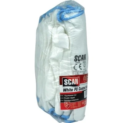 Scan White PU Coated Gloves L (Size 9) (Pack 12) SCAGLOPUW12L