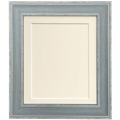 scandi Distressed Blue Picture Photo frame with Ivory Mount and Backing Board 30 x cm For Image size 8 inch