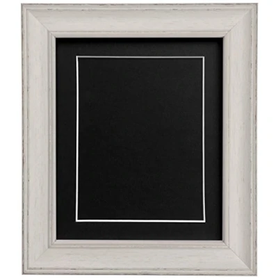 Scandi Distressed Pale Grey Picture Photo frame with Black Mount and Backing Board 40 x 50 cm For Image Size 15 10 inch