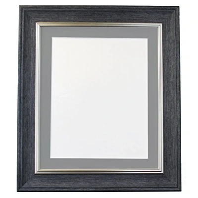 Scandi Vintage Charcoal Grey Picture Photo Frame With Dark Mount 9 x 7 Image size 6 4 Inch
