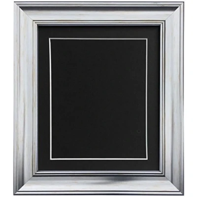 Scandi Vintage Silver Photo Frame with Black Mount and backing board 10 x 8 For Image size 6